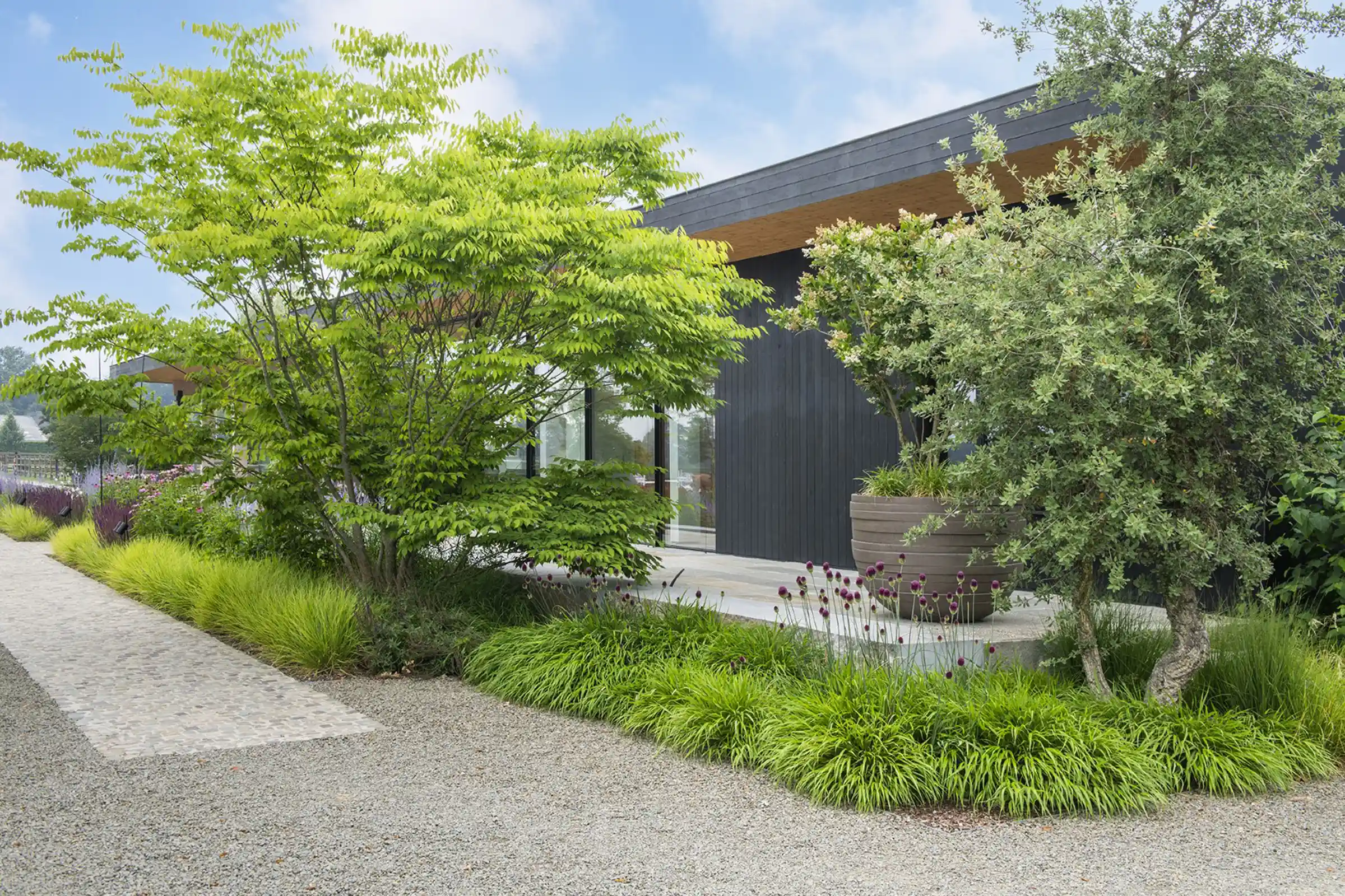 De klant heeft een voorliefde voor bomen, wat de vakmannen van PUUR Groenprojecten zorgvuldig hebben geïntegreerd in hun ontwerp. Dit resulteerde in de aanplanting van volwassen bomen die de indruk wekken al jaren op hun plek te staan. Het groen werd aangevuld met verschillende soorten beplanting, waaronder bloeiende accentplanten die zorgen voor kleur en sfeer. Het gebruik van bodembedekkende planten werd beperkt om meer ruimte te geven aan de kleurrijke accentplanten. Zo is de buitenruimte getransformeerd in een dynamisch en levendig plaatje dat door de seizoenen heen verandert en altijd een unieke sfeer biedt.